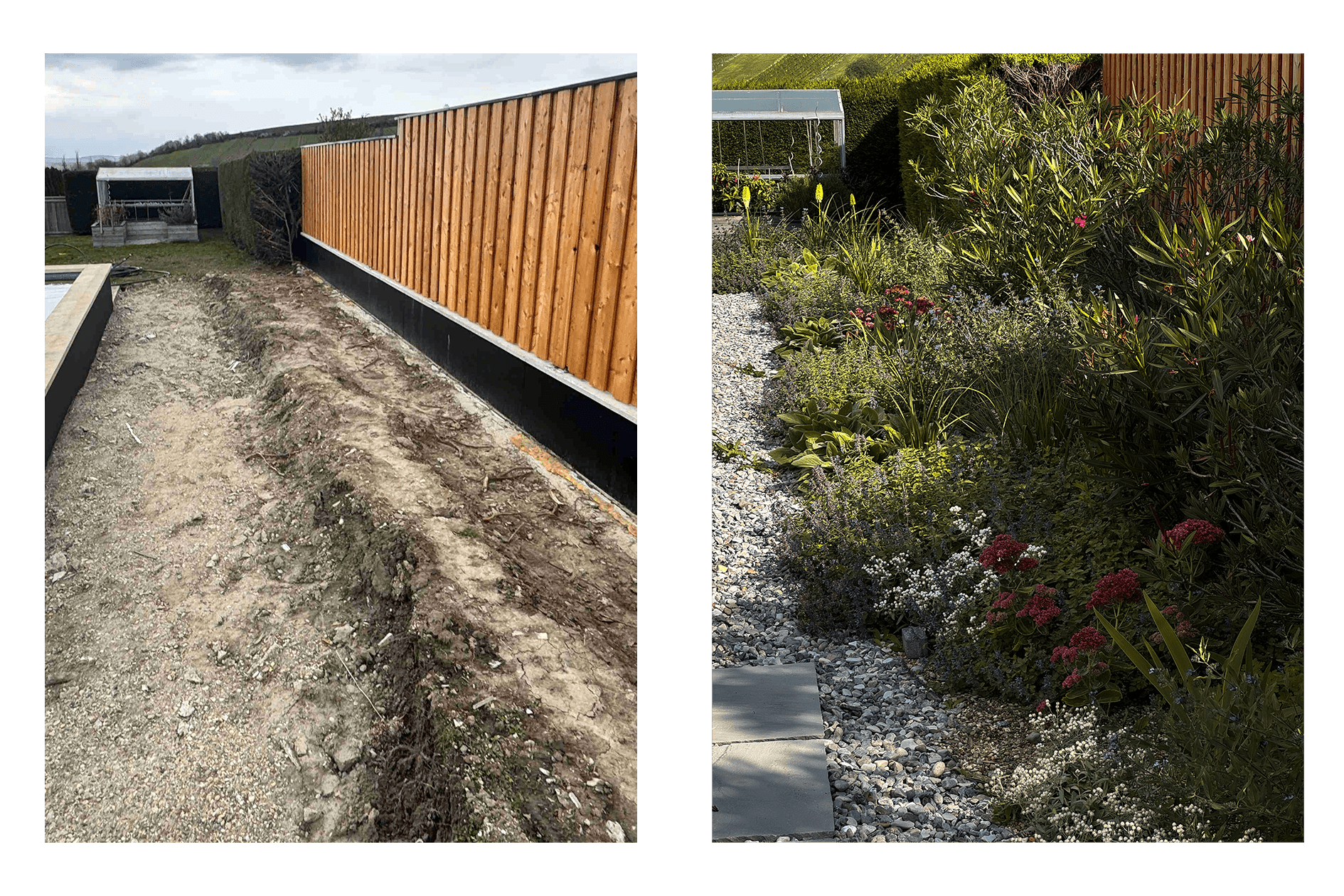 Vorhandene Oleander dürfen ab nun draußen überwintern und werden jahreszeitlich von verschiedenen Stauden und Gräsern begleitet. Die Kundschaft ist zufrieden – wir auch!